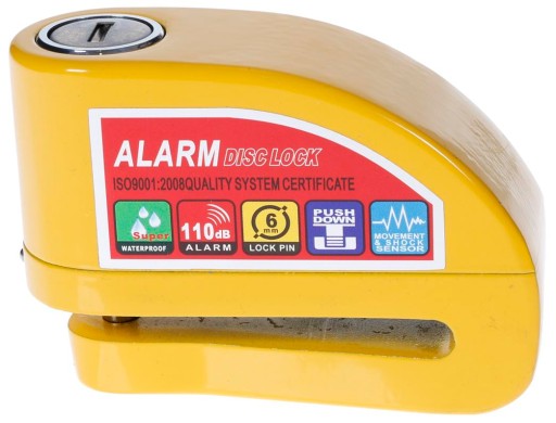 ЗАМОК С СИГНАЛИЗАЦИЯМ тормозной диск 110дБ ЖЕЛТЫЙ