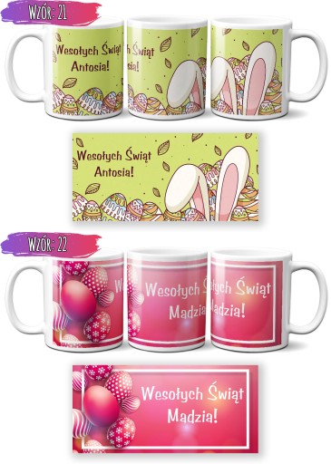 Po dokonaniu zamówienia prosimy w wiadomości do sprzedającego (formularz podczas składania zamówienia), podać nr wzoru kubka oraz imiona które mają być nadrukowane na kubku.