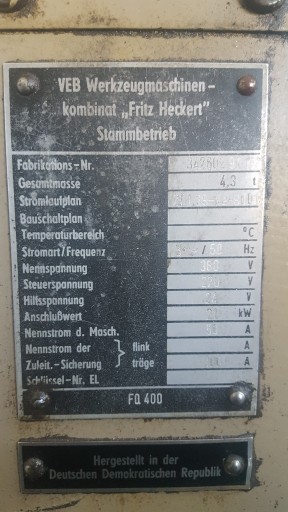 Parametry frezarki Heckert FQ 400: