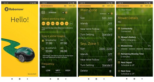 Robot może być sterowany za pomocą aplikacji dostępnej na systemy Android i iOS za pomocą połączenia Bluetooth. W aplikacji możemy wyznaczyć harmonogram pracy robota. Sprawdzić statystyki pracy. Więcej informacji znajdą Państwo w dalszej części opisu.