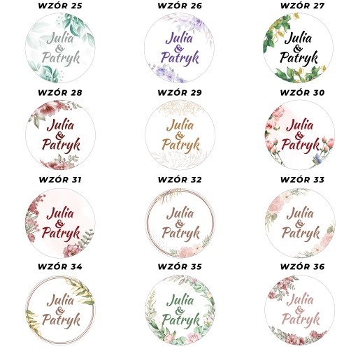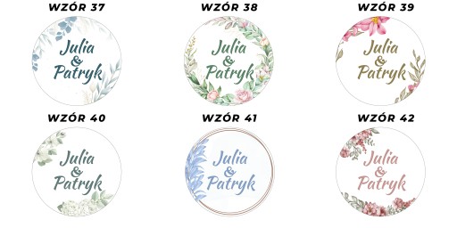 Wszystkie wzory pasują do naszych zaproszeń. Kolejność naklejek jest zgodna z zaproszeniami.