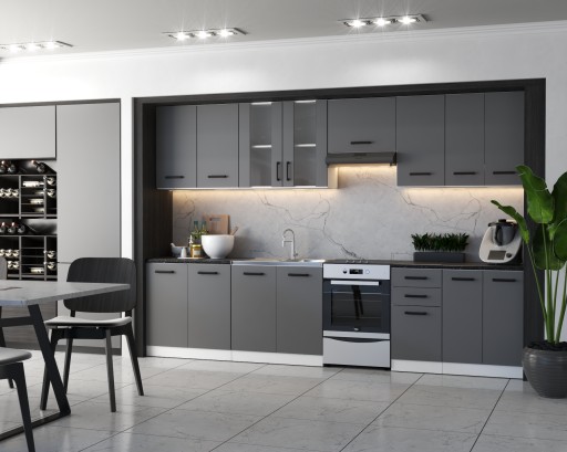 MEBLE KUCHENNE KUCHNIA ZESTAW SZAFKI BLAT JOLA 3,2M GRAFIT