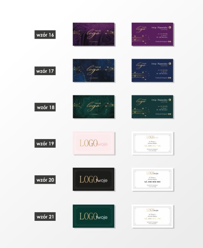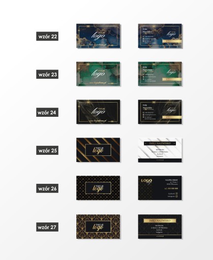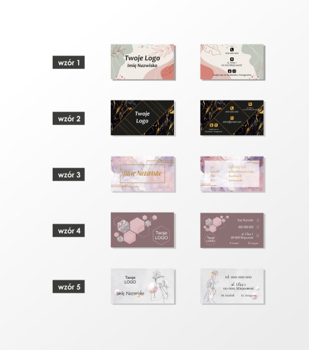- Wizytówki w różnych nakładach, z różnymi typami wykończenia
