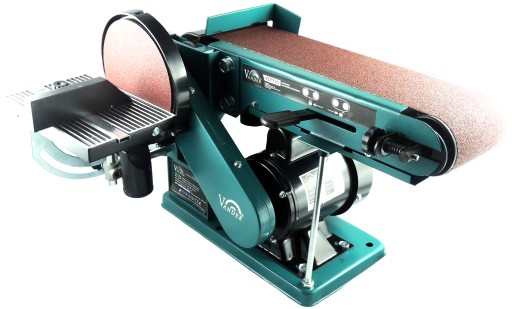 - Funkcjonalna szlifierka stołowa z silnikiem indukcyjnym na taśmę ścierna o wymiarach 915x100 oraz krążkiem ściernym 150 mm.
