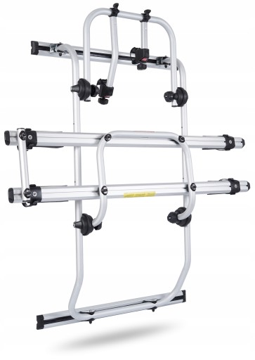 Składany, aluminiowy, włoski uchwyt do przewozu 2 rowerów, montowany na tylnej klapie bagażnika samochodowego za pomocą dedykowanych uchwytów montażowych oraz kleju*. Zastosowane rozwiązania pozwalają bezpiecznie przewozić rowery o: