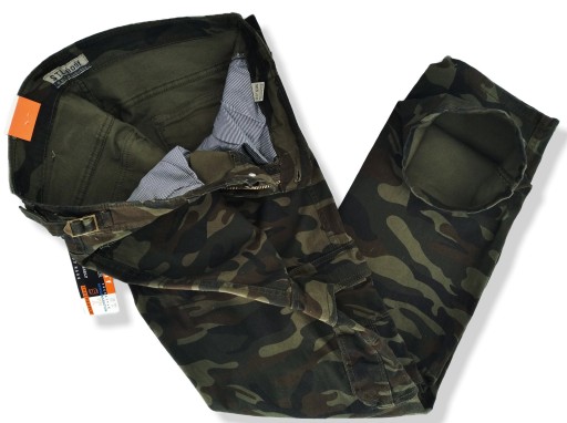 W33- Pas 86-88cm, Długość całkowita 109cm, Szerokość w udzie 29cm, Szerokość nogawki na dole 21cm, Stan spodni( z przodu, od guzika do kroku) 27cm