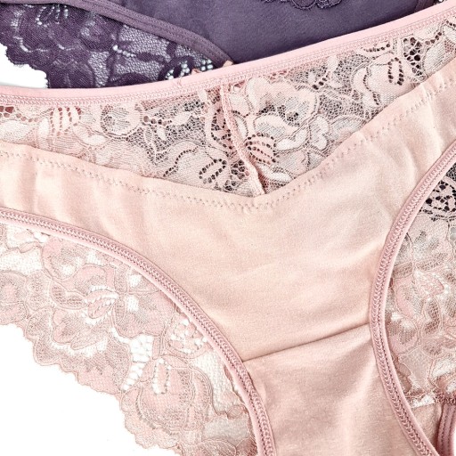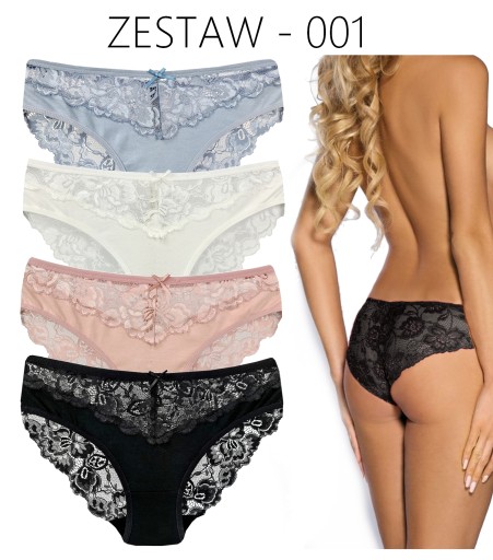 4 pak - Figi z efektowną koronką na pupie oraz z przodu. Koronka o pięknym kwiatowym motywie.