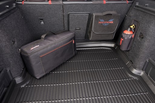 Poniżej zdjęcia prezentujące zastosowanie pokrowca w przestrzeni bagażowej. Pokrowiec zamontowany do tapicerki w bagażniku za pomocą systemu rzepów w które wyposażony jest pokrowiec. Od teraz gaśnica w bagażniku będzie miała swoje stałe miejsce i będzie cały czas pod ręką.