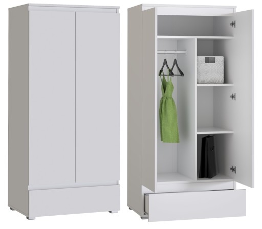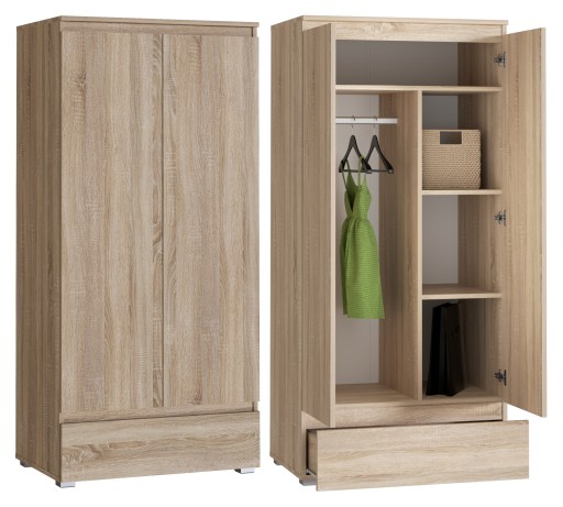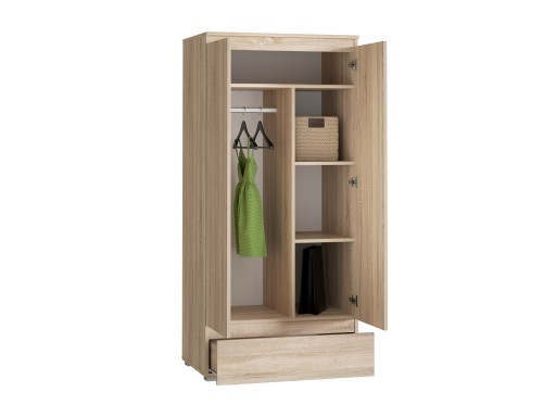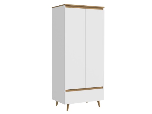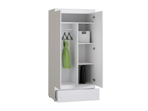 Szafa ubraniowa Norge 05 jest dopełnieniem Systemu Norge. Stanowi jeden z ważniejszych jego elementów. Jest miejscem przechowywania ubrań, w związku z czym musi być praktyczna i dobrze wykonana. Szafa ubraniowa Norge 05 posiada w swym wyposażeniu: 5 półek, drążek na wieszaki, oraz wysuwaną szufladę na prowadnicach rolkowych. Podobnie jak pozostałe elementy Systemu Norge, szafa pozbawiona jest uchwytów, drzwi zamykane są na zatrzask typu ‘klik’. Osadzona jest również na eleganckich stopkach z naturalnego drewna bukowego.