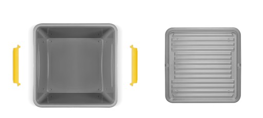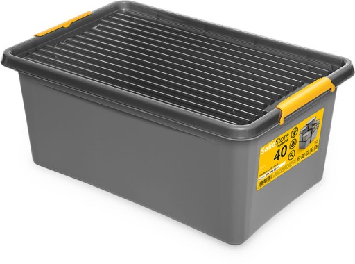 Pojemniki SOLID STORE pomogą Ci utrzymać porządek, a ich wytrzymała konstrukcja idealnie sprawdzi się przy przechowywaniu cięższych rzeczy. Szary kolor będzie pasował do każdego pomieszczania, a żółte uchwyty dodają wyrazu.