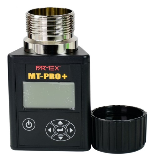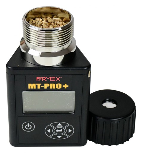 Miernik wilgotności ziarna Farmex MT Pro + to wysokiej jakości wilgotnościomierz do ziarna. Jest to sprawdzone urządzenie cieszące się bardzo dobrą opinią użytkowników na polskim rynku. Nasz wilgotnościomierz do ziarna jest jednym z nielicznych urządzeń w Polsce, które daje pomiar zbliżony do pomiarów dokonywanych na punktach skupu. Dokonanie pomiaru wilgotności ziarna w okresie żniw, pozwala wybrać najlepszy moment do koszenia i uzyskać najlepszą cenę zbytu.