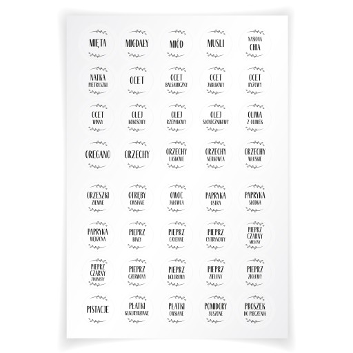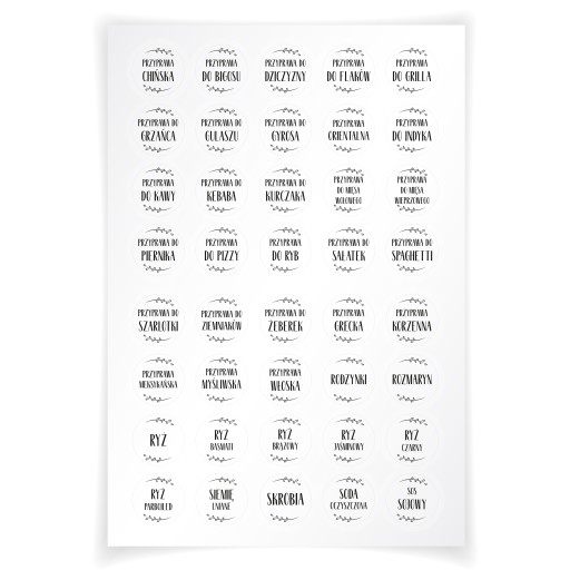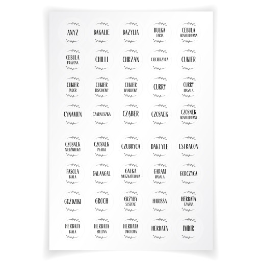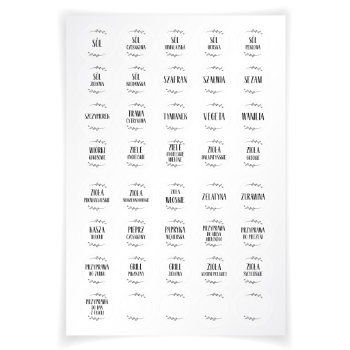Naklejki etykiety na pojemniki przyprawy słoiki