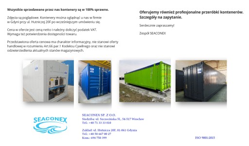 Zdjęcia są poglądowe. Kontenery można oglądnąć u nas w firmie w Gdyni przy ul. Hutniczej 20F po wcześniejszym umówieniu się.