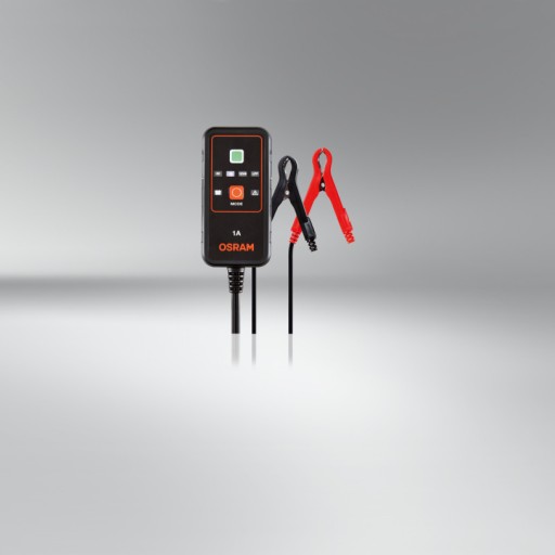 Inteligentny prostownik i urządzenie do konserwacji akumulatorów 1A, OSRAM BATTERYcharger 901, umożliwia ładowanie pojazdów 6V i 12V, w tym motocykli i małych samochodów osobowych.