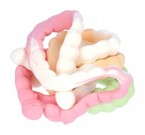 Szczególnie długa uczta! Dwukolorowe gąsienice prawoślazu o zabawnym, przyjaznym dla dzieci wyglądzie są dostępne w aromatycznych smakach: truskawka (zielona/biała), soczysta pomarańcza (pomarańczowo/biała) i malina (czerwona/biała).