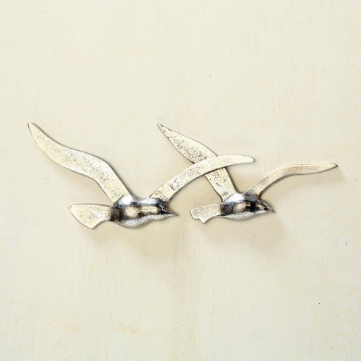 Ozdoba ścienna przedstawiająca podróżujące ptaki, wykonana z aluminium w kolorze srebrnym, celowo chropowatego. Niebanalna oraz elegancko wyglądająca dekoracja do każdego pomieszczenia, prezentująca się bardzo okazale.