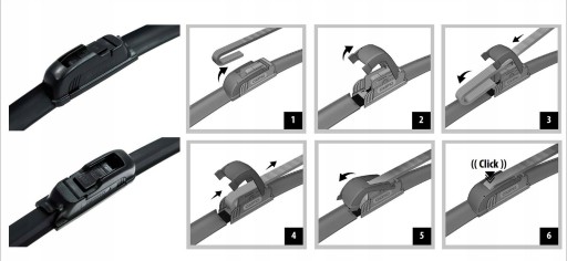 Proszę zwrócić uwagę na rodzaj mocowania oraz długości wycieraczek w swoim samochodzie!!!