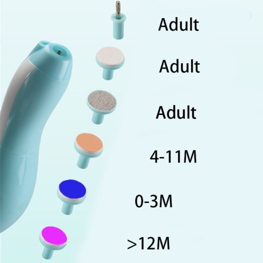 Każda końcówka posiada inną głowicę ścierną, dostosowaną do wieku użytkownika, co oznacza, że możesz dziecku skrócić paznokcie bez obaw, że zranisz jego delikatne paznokcie lub palce.