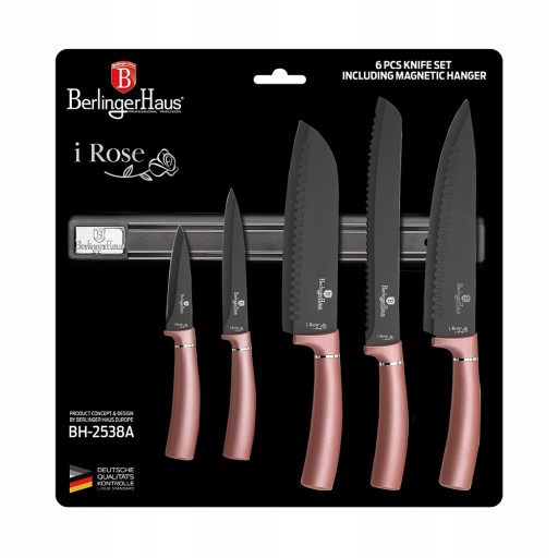 ZESTAW 5 NOŻY KUCHENNYCH Z LISTWĄ BERLINGER HAUS BH-2538 I-ROSE BERLINGER HAUS
