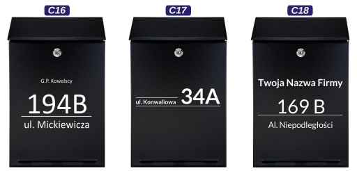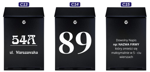 W przypadku podania tylko samego NAPISU, domyślnie wybieramy kolor skrzynki Antracyt Mat, z wzorem C1. (jak na zdjęciu głównym)