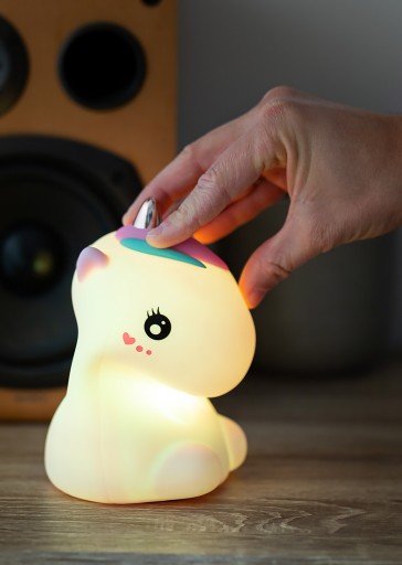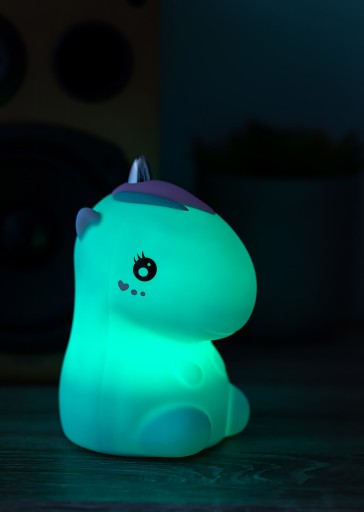 Fantastyczny element dekoracji do dziecięcego pokoiku. Lampka w kształcie jednorożca wyposażona jest w kolorowe LEDy w bardzo przyjemnych odcieniach - aż 8 kolorów.