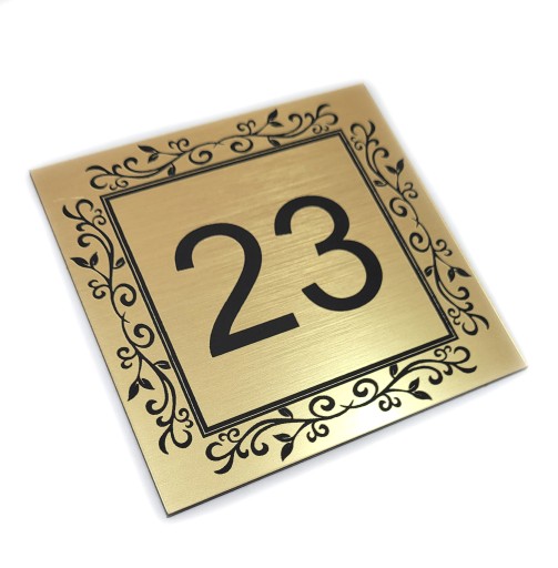 Tabliczka na drzwi pokoju, gabinetu, hotelu 8 x 8 cm w kolorze złoto szczotkowane.