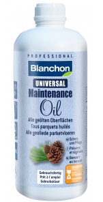 Universal Maintenance Oil konserwuje i regeneruje wszystkie powierzchnie olejowane. Doskonale nadaje się również do pielęgnacji parkietów olejowanych fabrycznie. Prostota aplikacji bez polerowania oraz szybkość wysychania pozwalają na niemal natychmiastowy powrót użytkowania pomieszczenia.