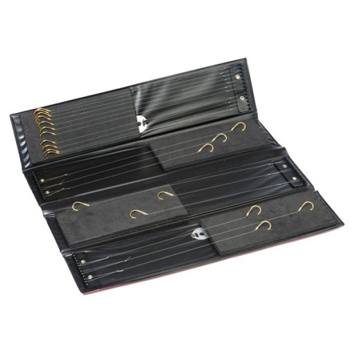 Elegancki i funkcjonalny portfel na przypony. Umożliwia przenoszenie ogromnej ilości przyponów o zróżnicowanej długości. Każda z czterech ścianek jest specjalnie usztywniana, na każdej z nich znajdują się zaczepy na 13 przyponów. W sumie możemy więc pomieścić aż 52 przyponów! Na ściankach znajdują się przyklejone kawałki pianki, w których umieszcza się haki.
