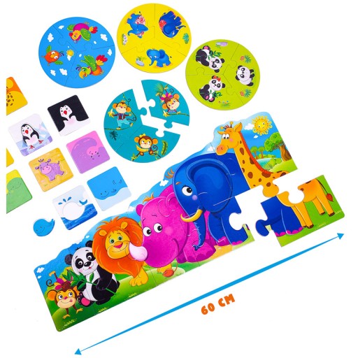 3. Ogromny puzzel z obrazkami różnych zwierzątek.