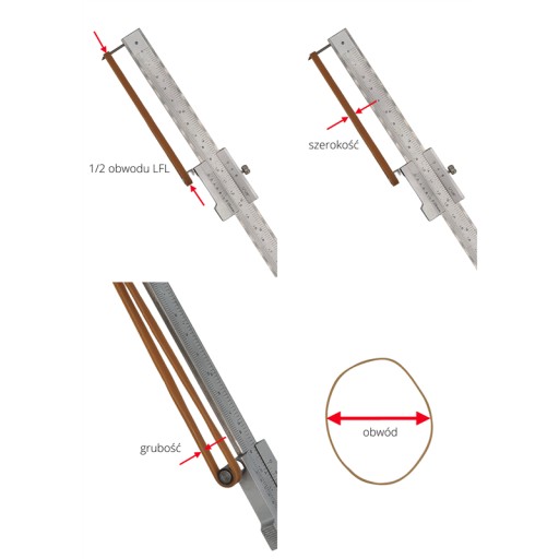 Wyobraźmy sobie, że bierzemy do rąk jedną gumkę recepturkę. Wsuwamy palce wskazujące obu dłoni w środek gumki i rozsuwamy dłonie do momentu, w którym poczujemy opór. W ten sposób, oczywiście w przybliżeniu, wyznaczyliśmy połowę obwodu gumki nierozciągniętej. Dlaczego w przybliżeniu? Nasze palce mają określoną grubość. W praktyce do wykonania pomiaru wykorzystuje się dokładną suwmiarkę, której trzpienie są dużo cieńsze i pozwalają na dużo dokładniejsze zmierzenie. Wymiar, który w ten sposób mierzymy nazywa się połową obwodu gumki nierozciągniętej, czyli LFL (z ang. Lay Flat Lenght-„długość podczas leżenia płasko”) i jest wyrażany w milimetrach (mm). Ważne: przy szczegółowym pomiarze, którego wynik podawany jest na opakowaniu bierze się pod uwagę wymiar mierzony od środka (tam, gdzie są nasze palce), nie na zewnątrz.