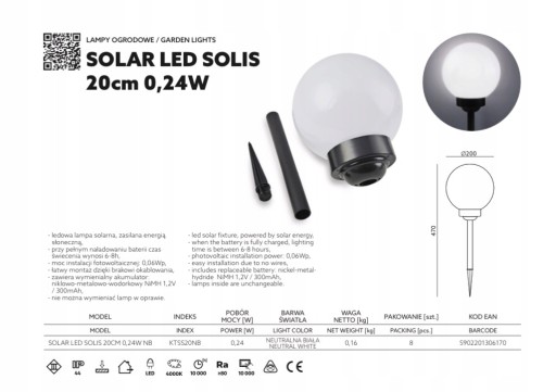 SOLAR LED SOLIS 20CM 0,24W barwa NEUTRALNA