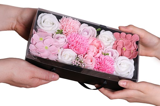 Box z kwiatami mydlanymi - idealny pomysł na prezent.