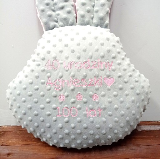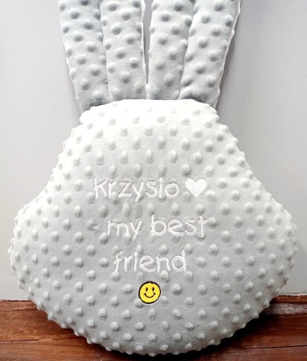 Poduszka Zajączek uszyta jest z polaru Minky wysokiej jakości (polar jest o wysokiej gramaturze i wypustki w postaci kropek nie znikają nawet po praniu).