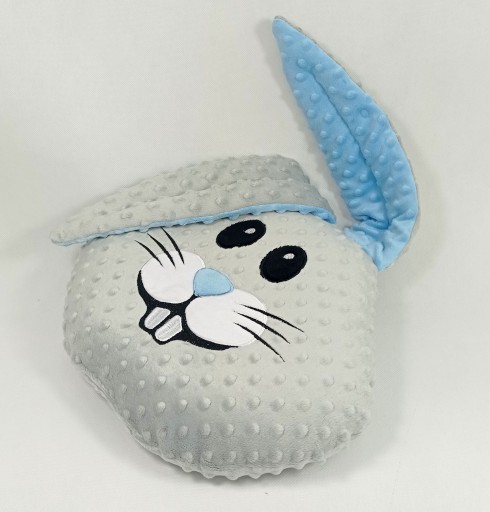 Przedmiotem sprzedaży jest PODUSZKA ZAJĄC, KRÓLIK z niebieskimi dodatkami (uszka, nosek).