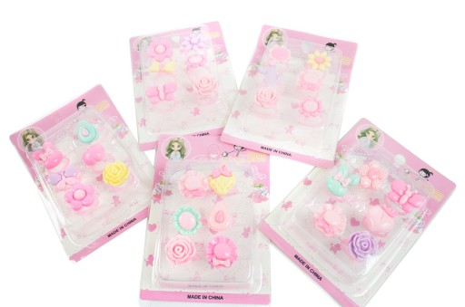 Każdy zestaw zawiera mix różnych pierścionków ze słodkimi i lubianymi przez dziewczynki - wzorami. Można podzielić się z najlepszymi przyjaciółkami.