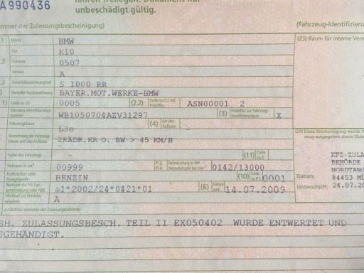 BMW S 1000 RR K10 z rocznika 2010. Kraj pochodzenia Niemcy.