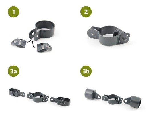 - zamocowanie 2 dowolnych akcesori ogrodzeniowych na jednej obejmie