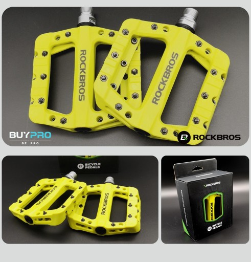 Pedały Platformowe Lekkie STRONG Limonka do Roweru MTB Nylon ROCKRBOS