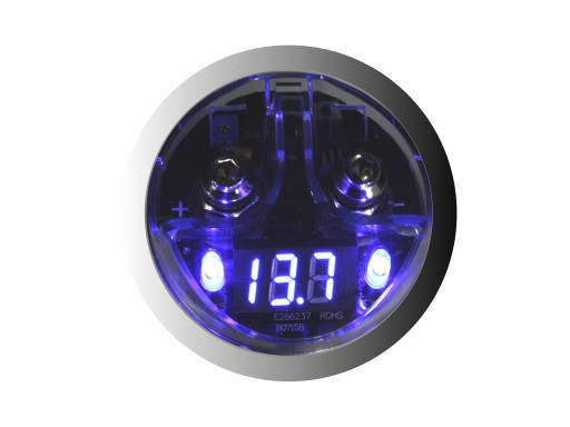 - Woltomierz z 3-cyfrowym niebieskim wyświetlaczem LED