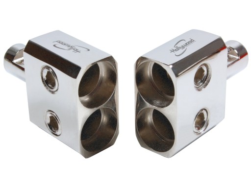 Zestaw rozdzielaczy (2 szt. / prawy i lewy) z wejściami dla dwóch przewodów zasilających wzmacniacz - wejście 2x53mm2 / wyjście 1x53mm2.