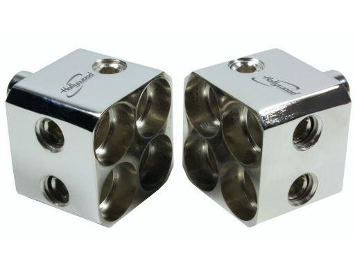 Zestaw rozdzielaczy (2 szt. / prawy i lewy) z wejściami dla czterech przewodów zasilających wzmacniacz - wejście 4x53mm2 / wyjście 1x53mm2.