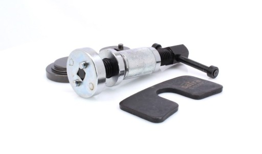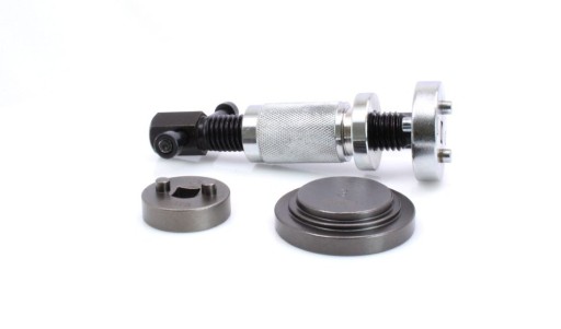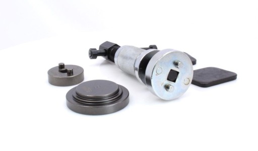 Zestaw z praską gwintowaną – prawostronną z 3 adapterami oraz tarczą dociskową stosowany do cofania tłoczków hamulcowych prawostronnych w motocyklach i samochodach osobowych.