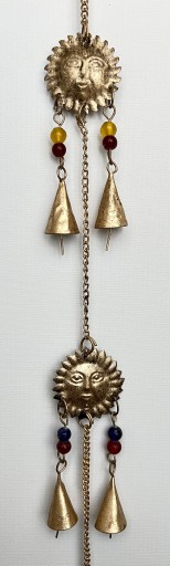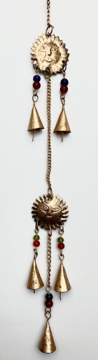 Dekoracyjne dzwonki w Słońca, wietrzne, dźwięczne wykonane są z naturalnych surowców wykorzystywanych do wyrobu tradycyjnych indyjskich ozdób. Na jeden wyrób składa się 5 słońc i 11 dzwonków. Na początku łańcuszka znajduje się kółko/zawieszka do wieszania na haczyk lub gwóźdź.