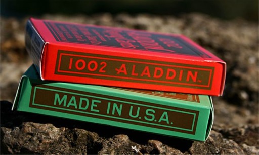 Niezwykłe, stylowe karty do gry wyprodukowane przez USPCC. Po raz pierwszy karty Aladdin zostały wydane w 1885 roku. W wersji gilded tradycyjne białe krawędzie zamieniono na pozłacane, dzięki czemu wyglądają przepięknie, luksusowo. Bardzo wysokiej jakości karty wykonane z najlepszych materiałów. Karty są nowe, nieużywane.