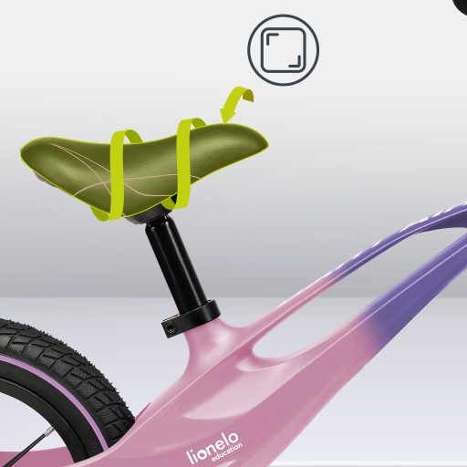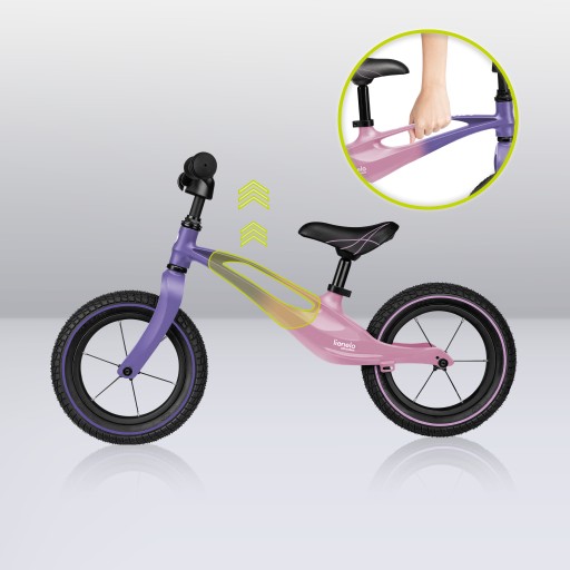 Rowerek biegowy na magnezowej ramie z pompowanymi kołami oraz blokadą skrętu zapobiegającą przewróceniu dziecka Lionelo Bart AIR