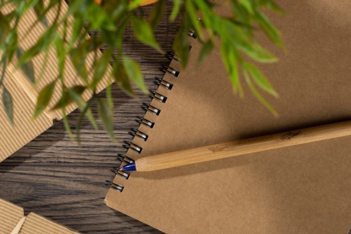 Klasyczny notes na spirali w papierowej, brązowej okładce wraz z miejscem na długopis. Kartki w notesie wykonane są z papieru kamiennego. Papier ten jest wyjątkowo wytrzymały i odporny na wilgoć. Posiada 60 kartek w linie, format A5. Zapakowany w woreczek biodegradowalny.