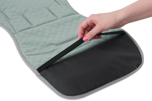 Podnóżek jest wodoodporny, plamoodporny i łatwo zmywalny. Dodatkowo gumka po nałożeniu na wózek przytrzymuje wkładkę, dzięki temu nie zsuwa się, nie przemieszcza, nie roluje się podczas ruchów dziecka.
