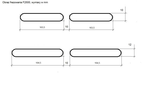 - Obraz frezowania (nawiewnik i czerpnia):: dwie szczeliny o długości 163,5 mm x 10 mm, oddzielone poprzeczką o długości 10 mm