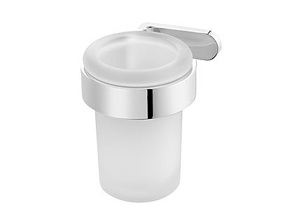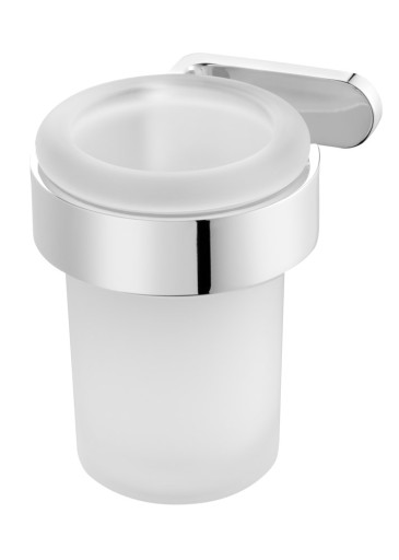 Kubek pojedynczy z uchwytem z kolekcji NATURA. Mocowany do ściany za pomocą śrub. Wykonany ze znalu w pokryciu chromowym, z elementem szklanym.