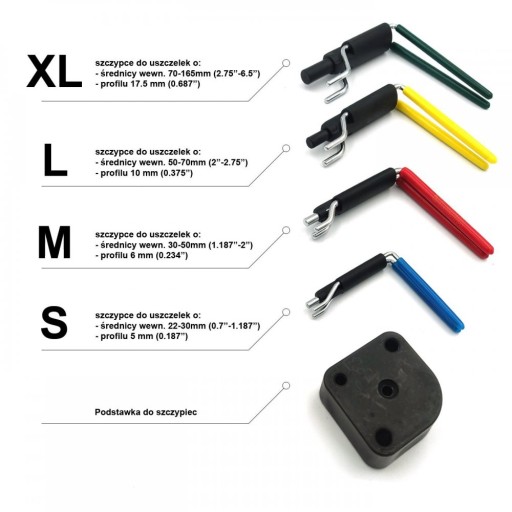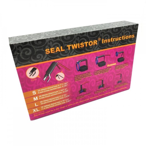 SEAL TWISTOR pomaga zmniejszyć ryzyko uszkodzenia podczas zakładania uszczelki. Przekształca uszczelkę w kształt omegi, aby rozmiar uszczelki był mniejszy niż średnica dławnicy. Uszczelka bezpiecznie przechodzi przez ostre skosy, a następnie odwija się w rowku. Cztery różne rozmiary w zestawie: